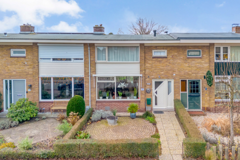 De strak aangelegde achtertuin combineert groen met bestrating en is dankzij de ligging op het zuidwesten heerlijk zonnig. Achterin de tuin vind je een vrijstaande houten berging (7,5 m²) met stroom en een achterom. Parkeren kan op je eigen parkeerplaats in het hofje direct achter de woning.